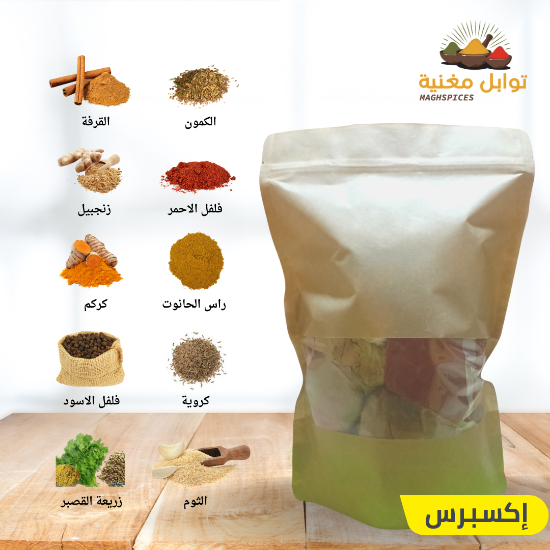 باقة التوابل الأساسية 950 غرام متكونة من 10 انواع من أجود توابل مغنية