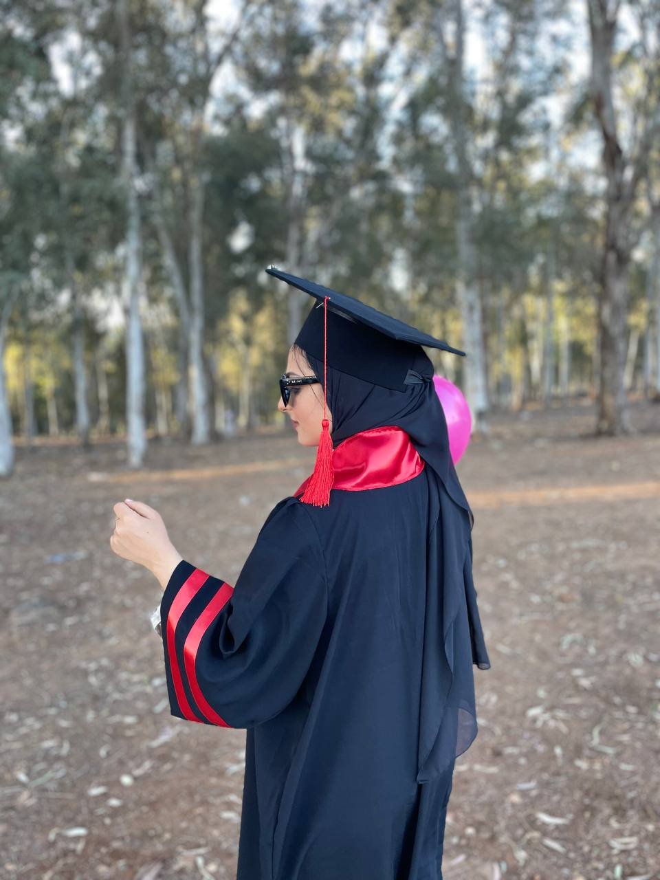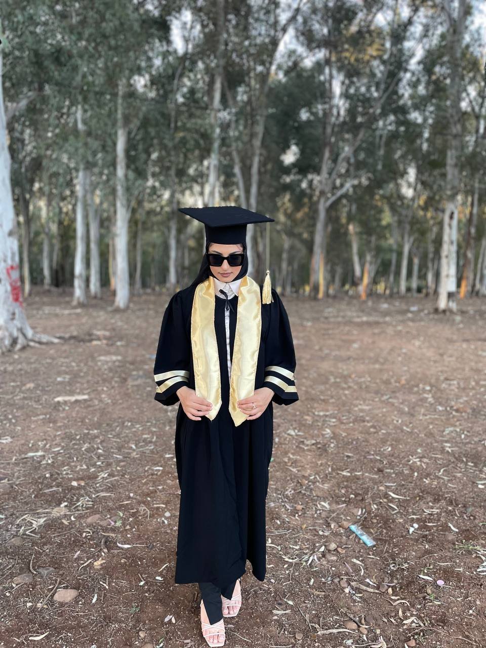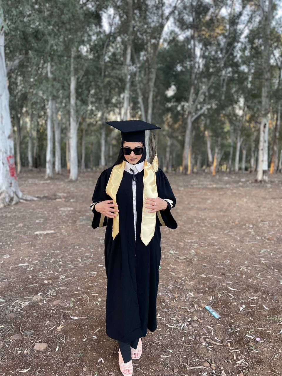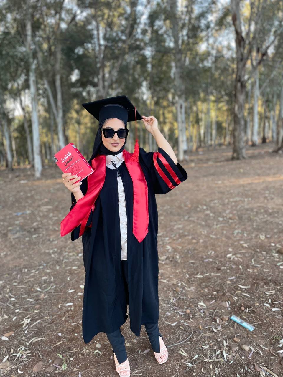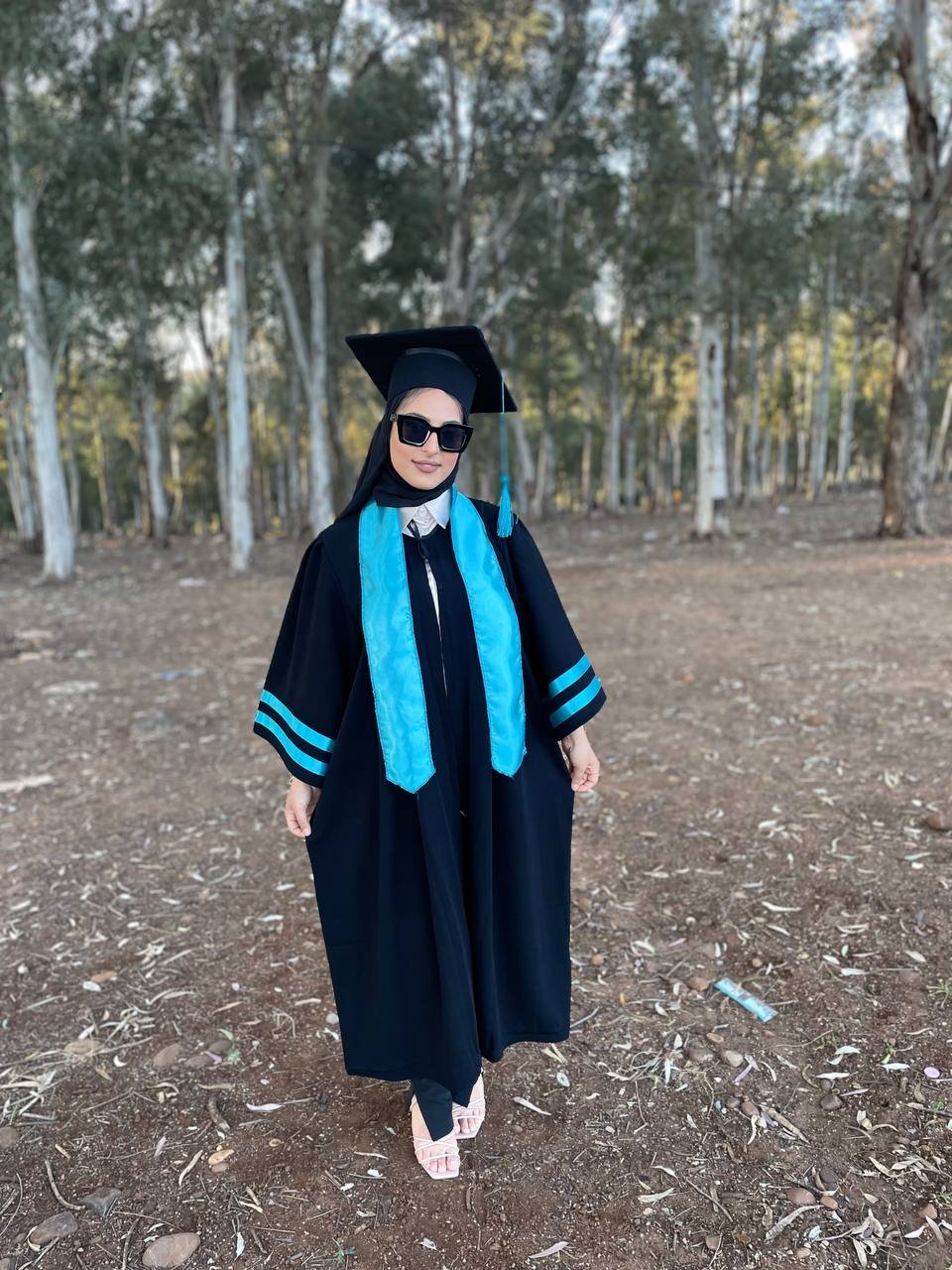A graduation kit consisting of 3 pieces, a hat + a suit + a scarf in various colors, made with the best types of Burj Dubai RGB abaya fabric, which is rich in black definition, in addition to that, workmanship and dedication to the smallest details