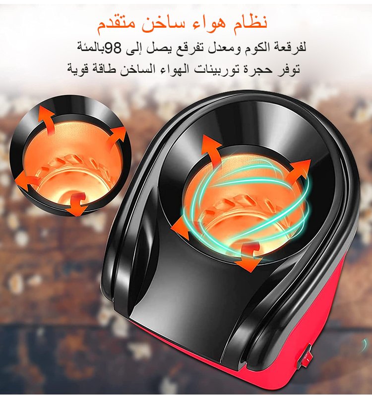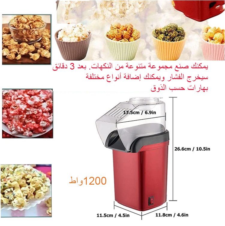 – غطاء بلاستيكي بفتحة جانبية لتدفق الفشار مباشرة في طبقك.