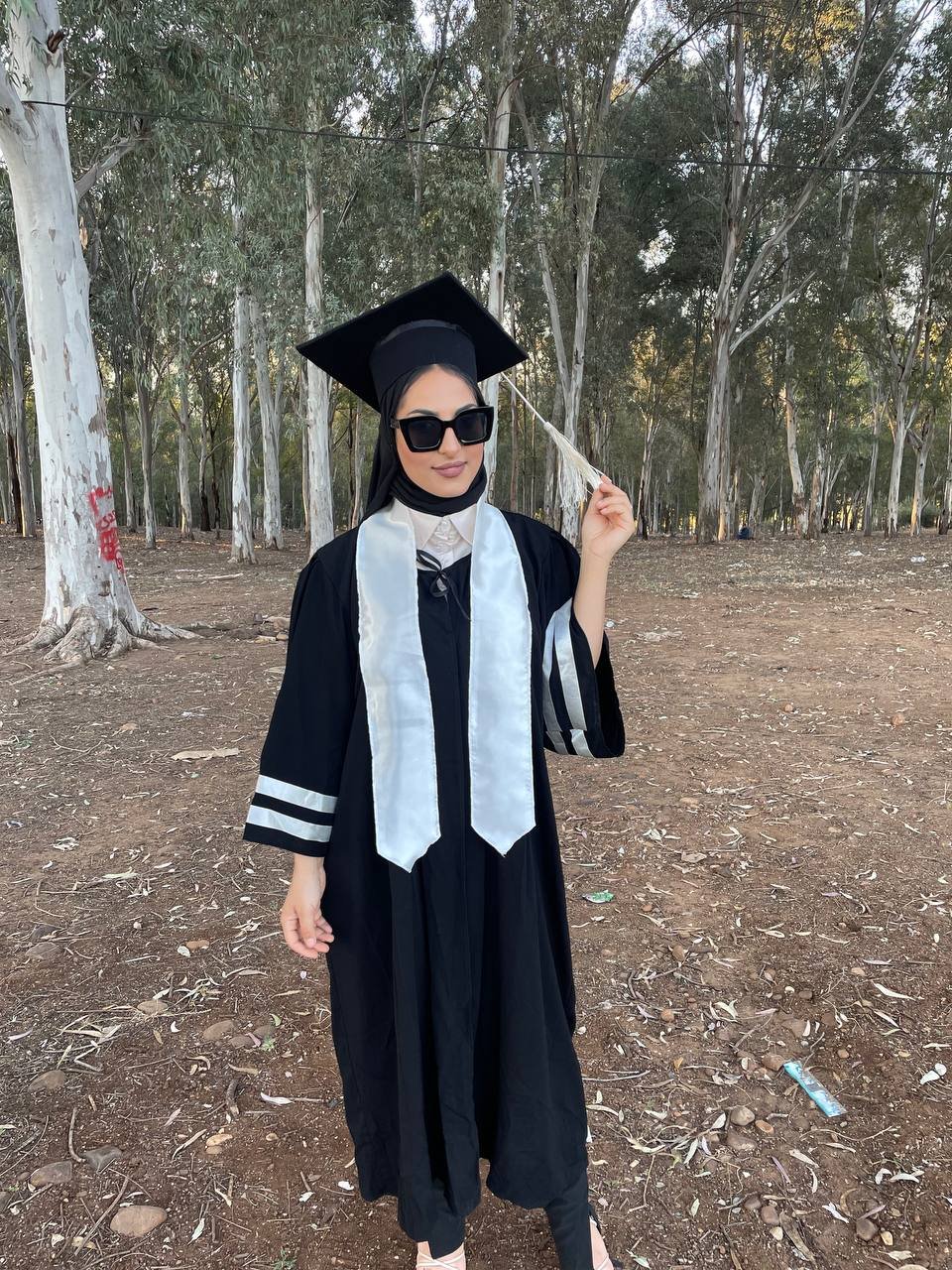 A graduation kit consisting of 3 pieces, a hat + a suit + a scarf in various colors, made with the best types of Burj Dubai RGB abaya fabric, which is rich in black definition, in addition to that, workmanship and dedication to the smallest details