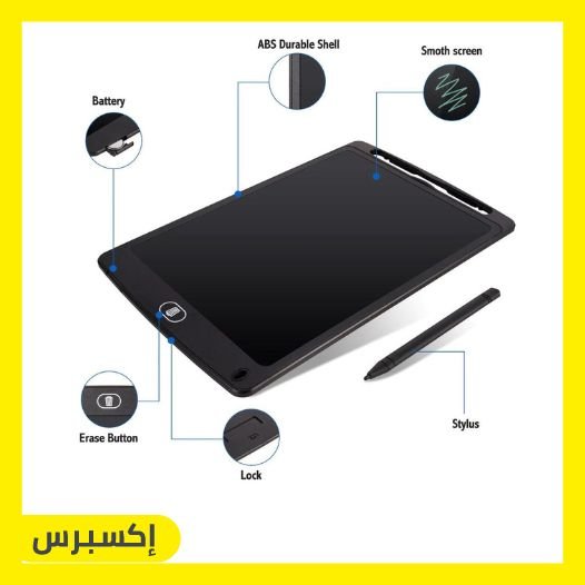 - لوحة كتابة إلكترونية يمكنها الكتابة عليها حوالي 100,000 مرة باستخدام زر المسح